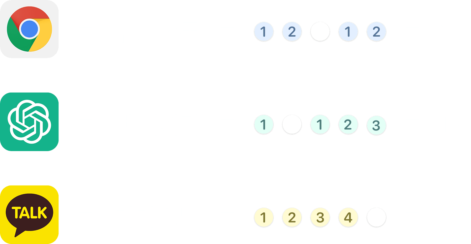 *e.g., "구-글-[Space]-크-롬" = 2 Taps, Short Pause, 2 Taps.